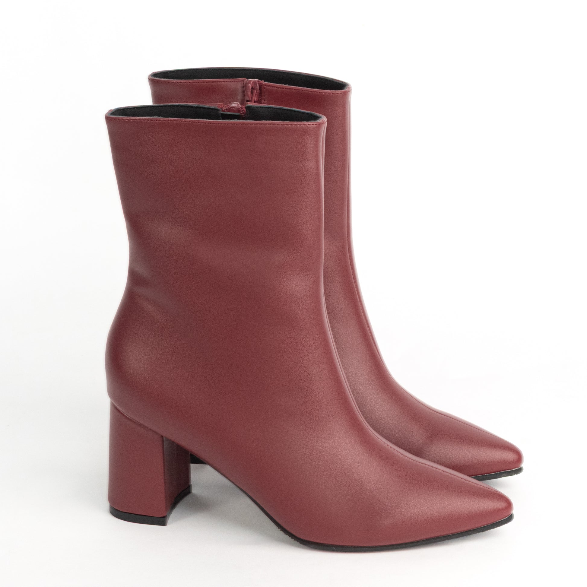 Descubre el Botín Kiara Vino: punta cuadrada y tacón cómodo de altura media para un look sofisticado y versátil. Perfecto para usar en cualquier temporada.