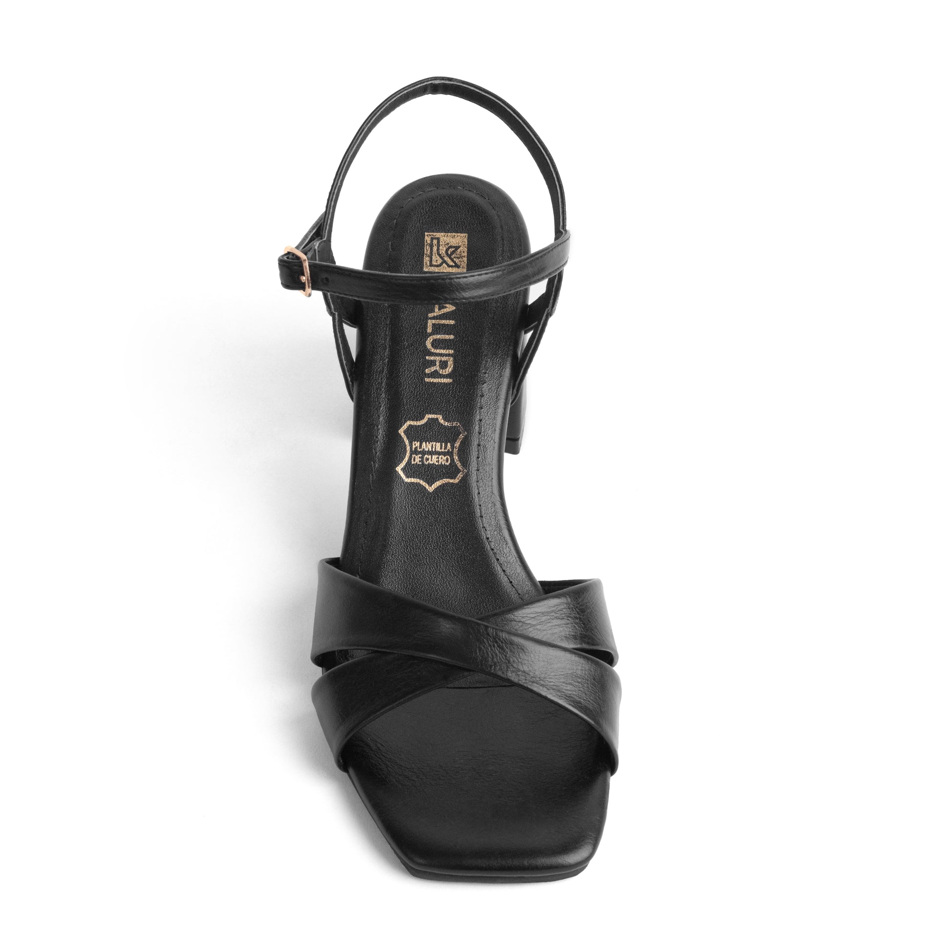 Un modelo creado para la mujer que busca diseño, estabilidad y un estilo contemporáneo. Su estructura de tiras cruzadas, el acabado en negro mate y su base firme crean una sandalia moderna, elegante y perfecta para elevar cualquier outfit.